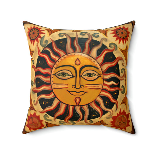 Rustic Folk Art Celestial Sun Design Square Pillow - Cottagecore Country Farm Style Gift for Yourself or Loved Ones