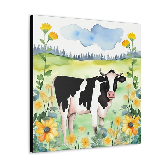 Rustic Folk Art Holstein Cow in Field Canvas Gallery Wraps - Perfect Gift for Your Country Farm Friends