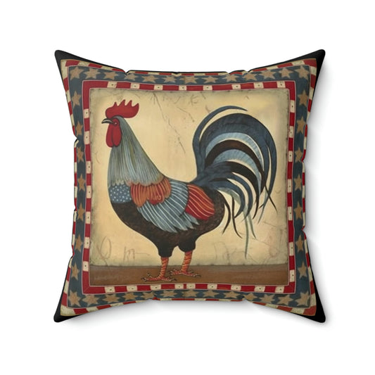 Rustic Folk Art Rooster Design Square Pillow - Cottagecore Country Farm Style Gift for Yourself or Loved Ones