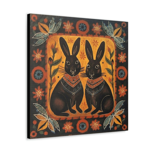 Rustic Folk Bunny Couple Canvas Gallery Wraps - Perfect Gift for Your Country Farm Friends