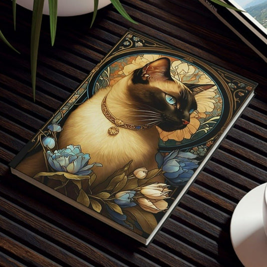 Siamese Cat Notebook - Stained Glass Window - Cat Inspirations - Hard Backed Journal