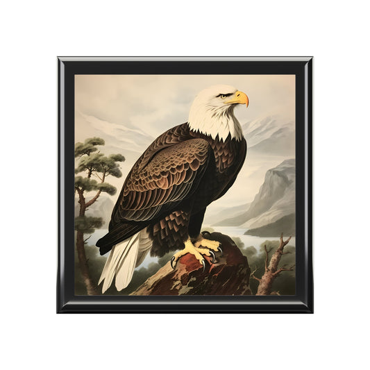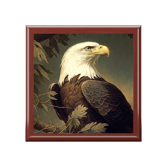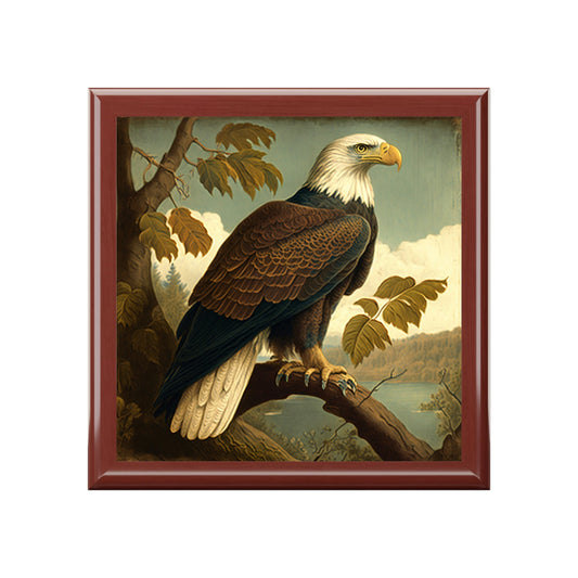Vintage Bald Eagle Wooden Keepsake Jewelry Box