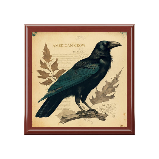 Vintage American Crow Wooden Keepsake Jewelry Box