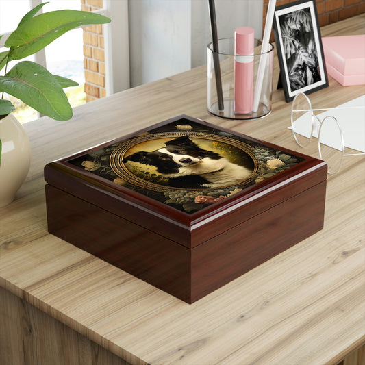 Vintage Art Nouveau Border Collie Jewelry Keepsake Box - Jewelry Travel Case, Birthday Gift Mom, Bridal Party Gift, Jewelry Case, Jewelry Box Girls