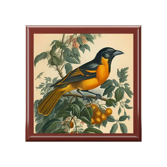 Vintage Baltimore Oriole Wood Keepsake Jewelry Box with Ceramic Tile Cover