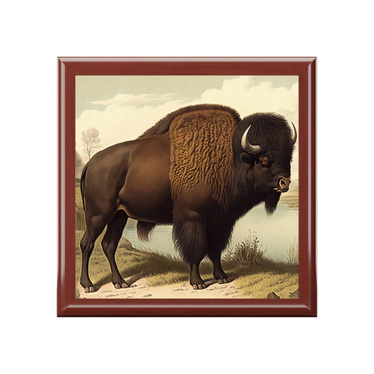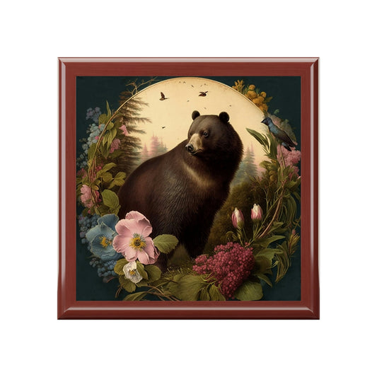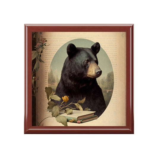 Vintage Black Bear Portrait Wooden Keepsake Jewelry Box