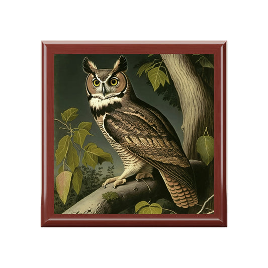 Vintage - Great Horned Owl - Wooden Keepsake Jewelry Box