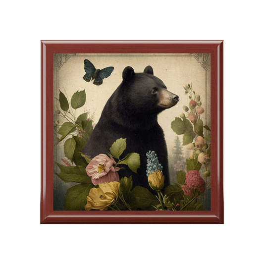 Vintage Black Bear Wooden Keepsake Jewelry Box