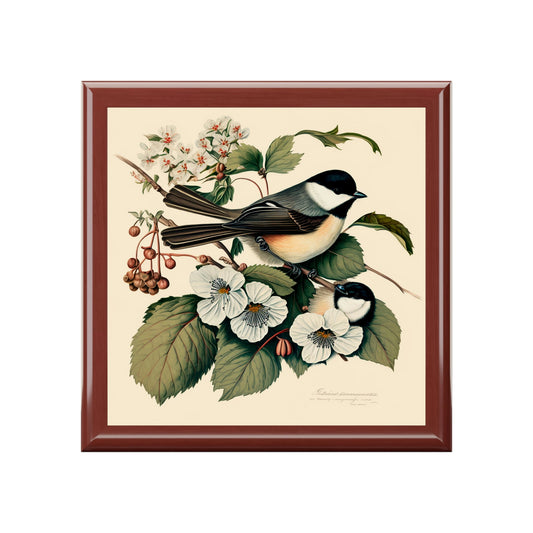 Vintage Chicadee Wooden Keepsake Jewelry Box
