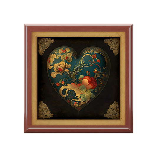 Vintage Chinese Folk Art Heart Gift and Jewelry Box
