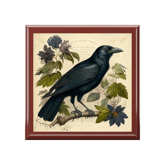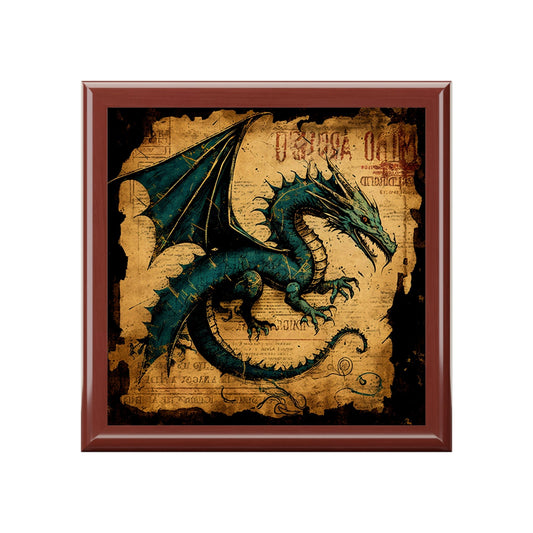 Vintage Dragon Wooden Keepsake Jewelry Box with Ceramic Tile Cover