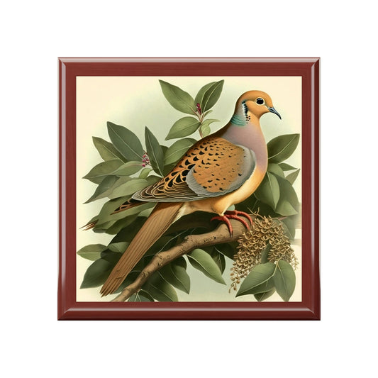 Vintage Dove Wood Keepsake Jewelry Box with Ceramic Tile Cover