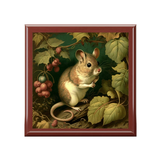 Vintage Field Mouse Wooden Keepsake Jewelry Box