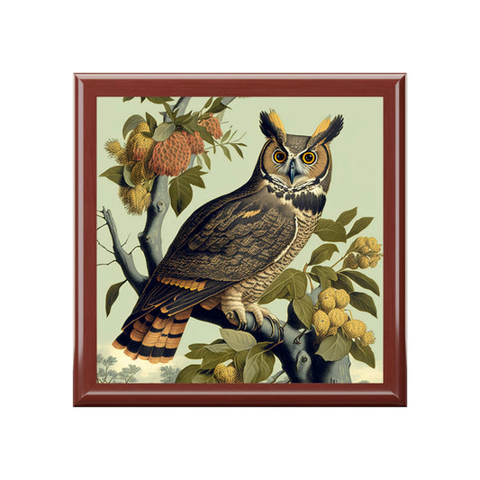 Vintage Great Horned Owl Wooden Keepsake Jewelry Box