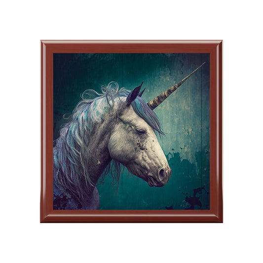 Vintage Grunge Unicorn Wooden Keepsake Jewelry Box