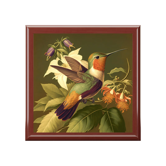 Vintage Hummingbird Wooden Keepsake Jewelry Box