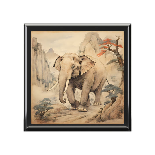 Vintage Japandi Style Elephant Artwork Gift and Jewelry Box
