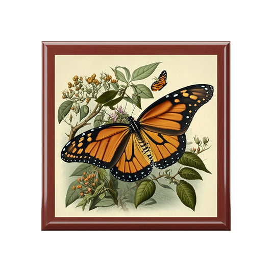 Vintage Monarch Butterfly Wooden Keepsake Jewelry Box