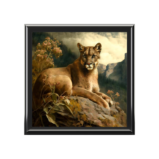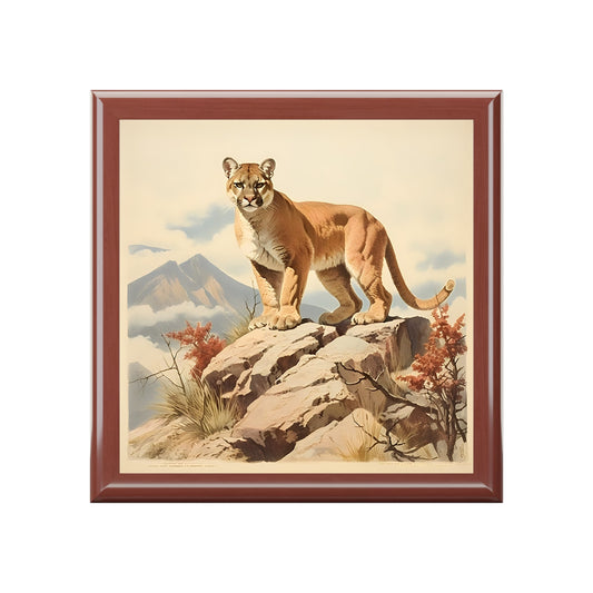 Vintage Nature Mountain Lion Art Print Jewelry Box