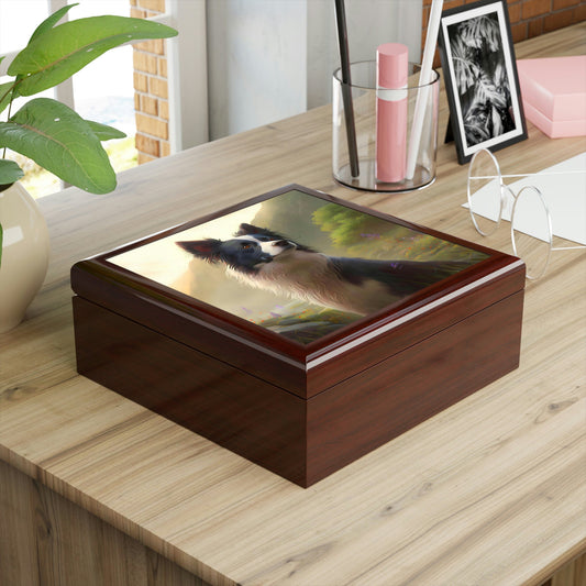 Vintage Noble Border Collie Sheep Herder Jewelry Keepsake Box - Jewelry Travel Case, Birthday Gift Mom, Bridal Party Gift, Jewelry Case, Jewelry Box Girls