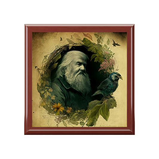 Vintage Old Man and Crow Wooden Keepsake Jewelry Box