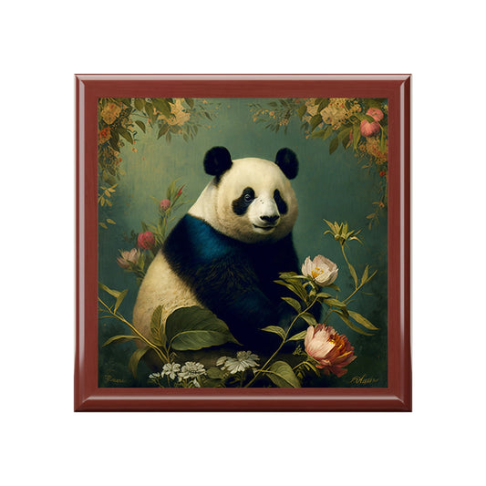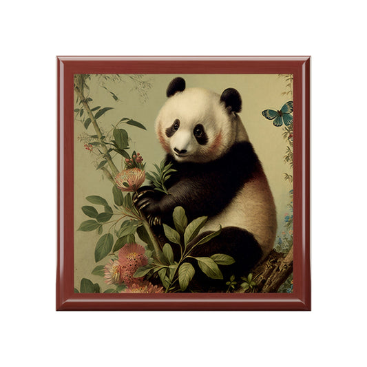 Vintage Panda Art Wooden Keepsake Jewelry Box