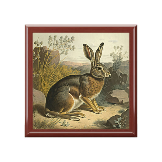 Vintage Rabbit Wooden Keepsake Jewelry Box with Ceramic Tile Cover