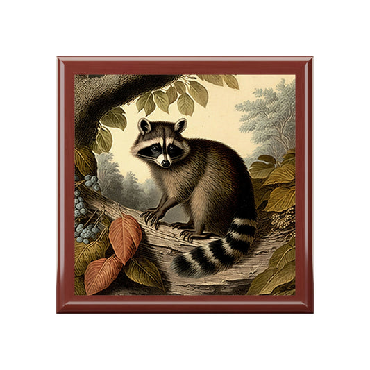 Vintage Raccoon Wooden Keepsake Jewelry Box