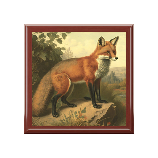 Vintage Red Fox Wooden Keepsake Jewelry Box