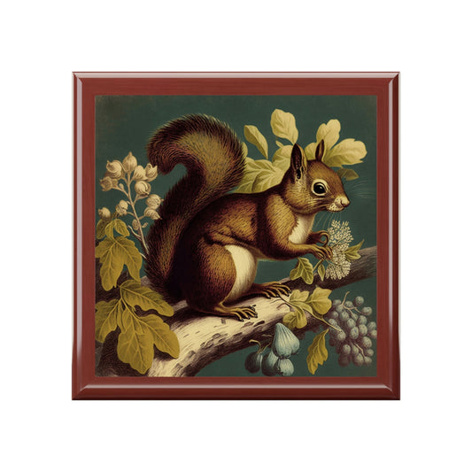 Vintage Red Squirrel Wooden Keepsake Jewelry Box