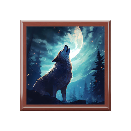 Wolf Howling on a Full Moon Night Art Print Gift and Jewelry Box