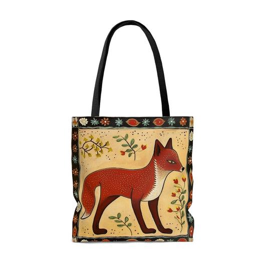 Folk Art Fox Tote Bag - Cute Cottagecore Totebag Makes the Perfect Gift