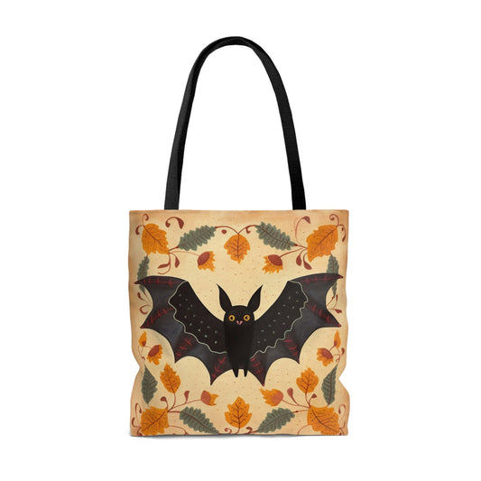 Folk Art Halloween Bat Tote Bag - Cute Cottagecore Totebag Makes the Perfect Gift