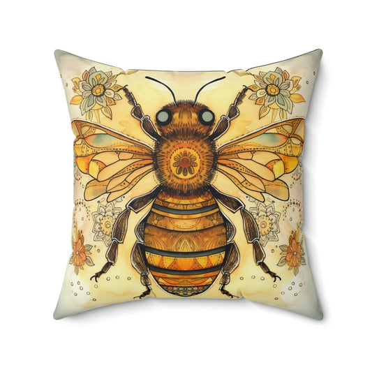 Folk Art Honey Bee Portrait Design Square Pillow - Cottagecore Country Farm Style Gift for Yourself or Loved Ones