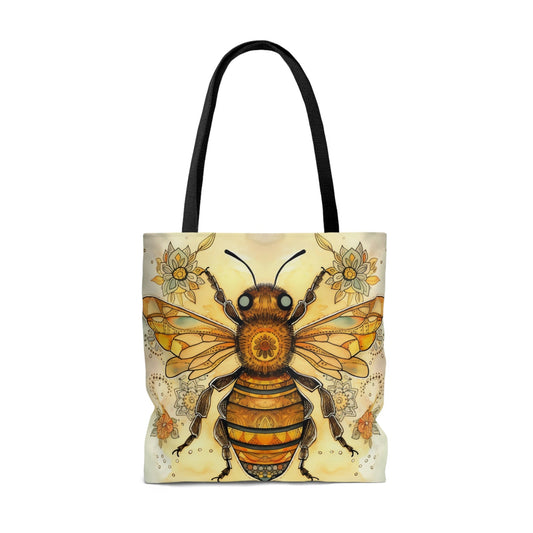 Folk Art Honey Bee Tote Bag - Cute Cottagecore Totebag Makes the Perfect Gift