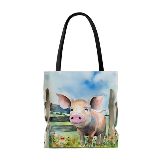 Folk Art Pig in Barnyard Tote Bag - Cute Cottagecore Totebag Makes the Perfect Gift