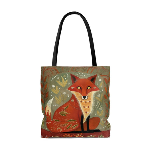 Folk Art Red Fox Tote Bag - Cute Cottagecore Totebag Makes the Perfect Gift