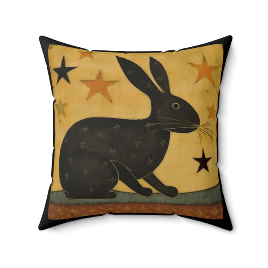 Folk Art Rustic Rabbit Design Square Pillow - Cottagecore Country Farm Style Gift for Yourself or Loved Ones