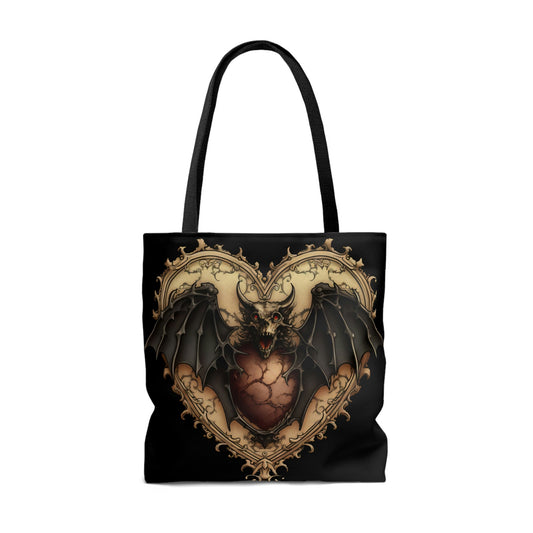 Gothic Bat Heart Tote Bag - Cute Cottagecore Totebag Makes the Perfect Gift