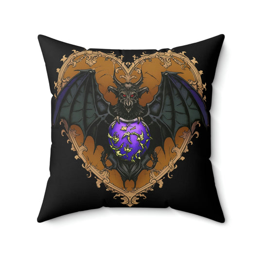 Gothic Bat Heart Design Square Pillow - Goblincore Goth Style Gift for Yourself or Your Witchy Loved Ones
