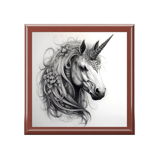 Hamster with Guitar Wood Keepsake Jewelry Box with Ceramic Tile Cover