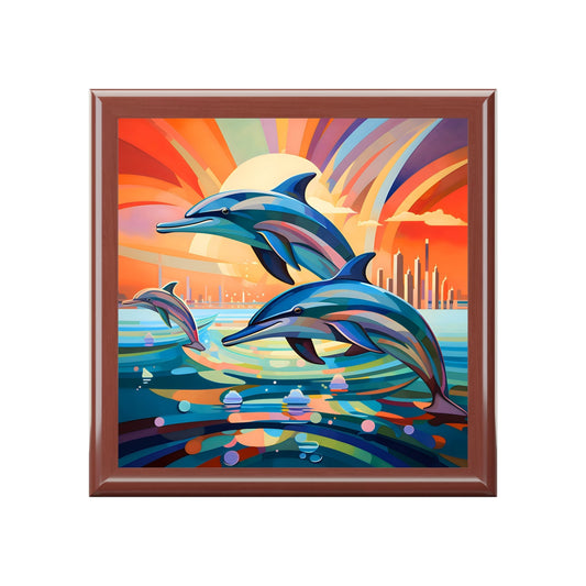 Art Deco Dolphins Jumping Fine Art Print Jewelry Keepsake Trinkets Box