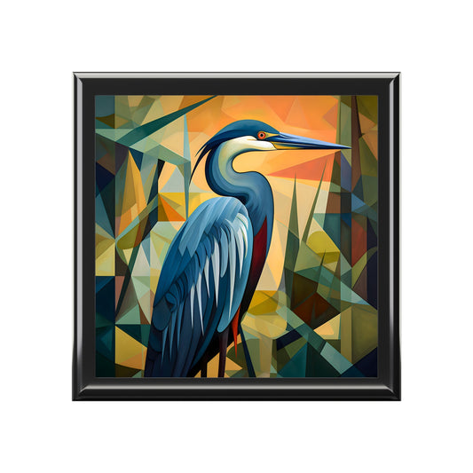 Art Deco Great Blue Heron Fine Art Print Jewelry Keepsake Trinkets Box