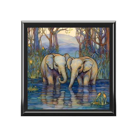 Art Nouveau Baby Elephants Fine Art Print Jewelry Keepsake Trinkets Box