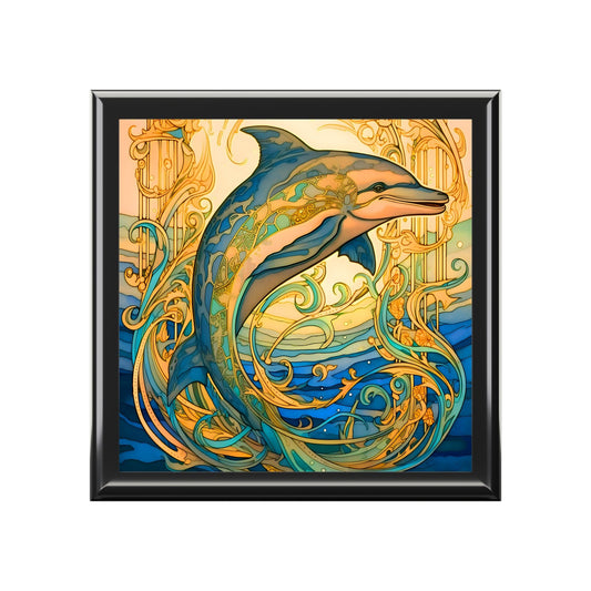 Art Nouveau Golden Dolphin Fine Art Print Jewelry Keepsake Trinkets Box