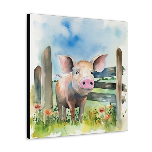 Rustic Folk Art Watercolor Pig Canvas Gallery Wraps - Perfect Gift for Your Country Farm Friends