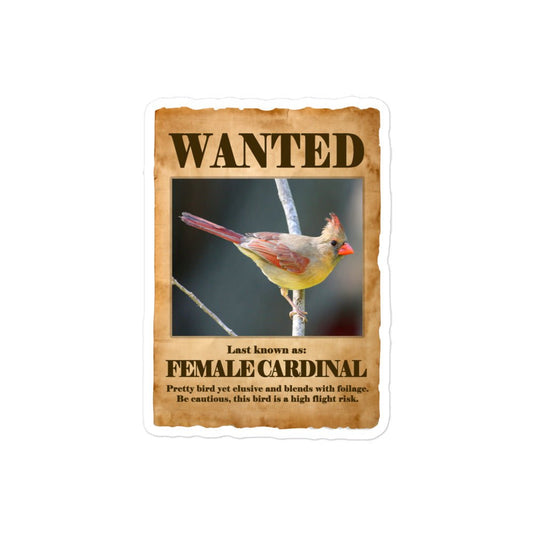 Wanted: Female Cardinal Bubble-Free Stickers