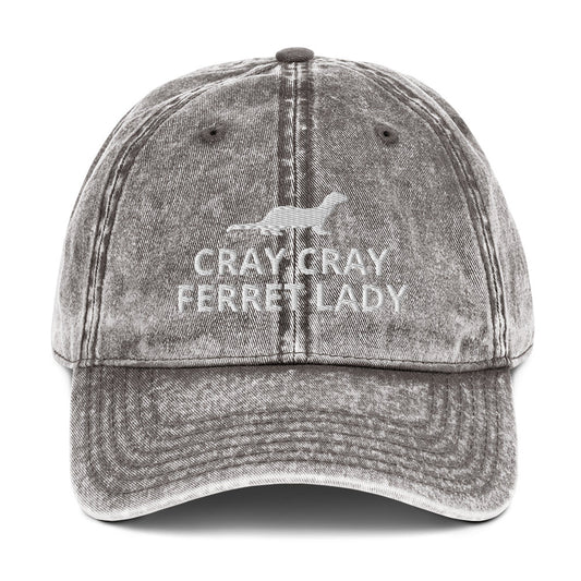 Ferret Vintage Cotton Twill Cap | Cray Cray Ferret Lady | Perfect gift for the Pet Ferret lover! | Multiple Hat Colors Available