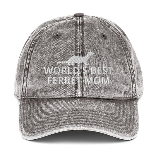 Ferret Vintage Cotton Twill Cap | World's Best Ferret Mom | Perfect gift for the Pet Ferret lover! | Multiple Hat Colors Available