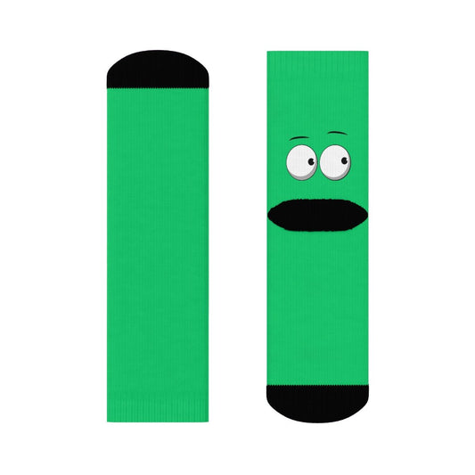 Green and Purple Flirty Sock Puppet Crew Socks Cartoon Happy Fun
